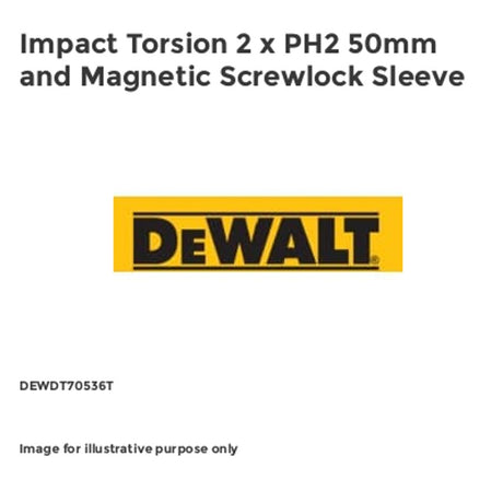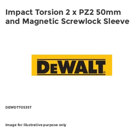 Low stock (10 units)£16.49Unit price /UnavailableImpact Torsion 2 x PZ2 50mm and Magnetic Screwlock Sleeve DEWDT70535T