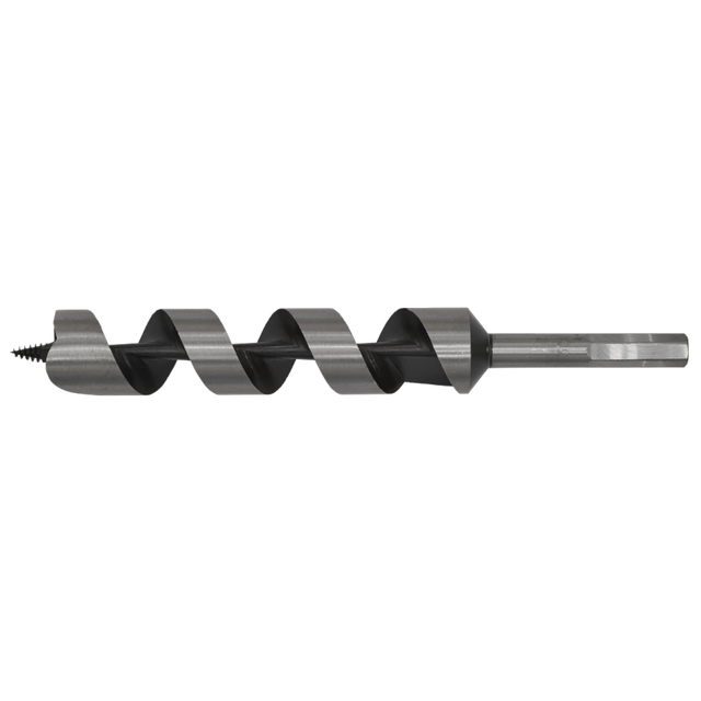 Superior quality auger wood drill bit has a hexagonal shank for higher torque ranges demanded by this drill type. Fully hardened with a screw point to aid location and smooth drilling. Supplied in a plastic wallet.