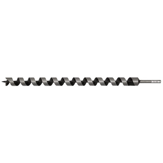 Superior quality auger wood drill bit has a hexagonal shank for higher torque ranges demanded by this drill type. Fully hardened with a screw point to aid location and smooth drilling. Supplied in a plastic wallet.