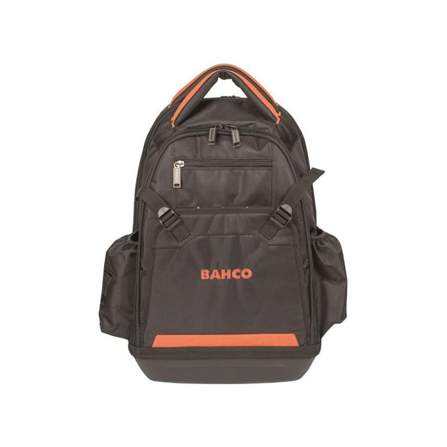 The Bahco Electrician's Heavy-Duty Backpack with an extra-large storage capacity, multiple inside and outside pockets, and a special compartment on the back, ideal for a laptop, has been designed for safe and comfortable transport of a variety of tools. Made of 1680D+600D polyester with a fully waterproof and anti-slip, hard plastic base. Other features include metal zips and 3 different handles for easy carrying. Load Capacity 20kg