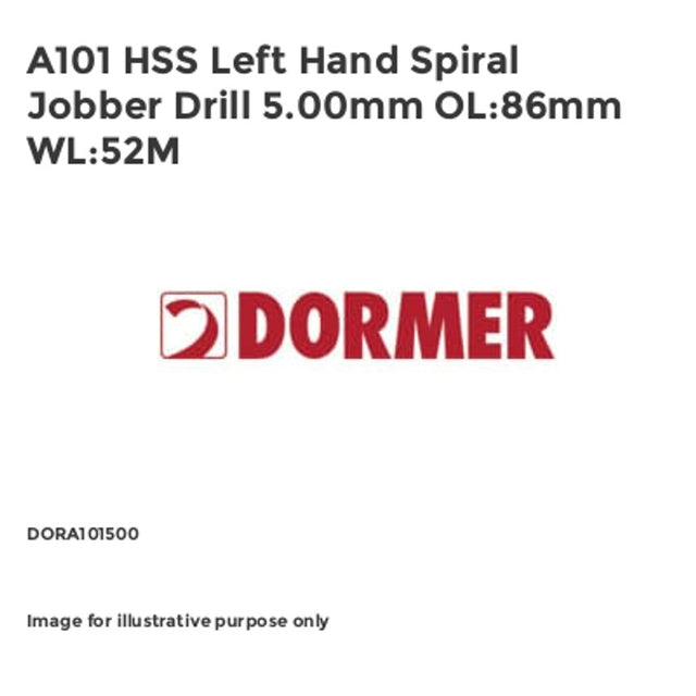 A101 HSS Left Hand Spiral Jobber Drill 5.00mm OL:86mm WL:52M DORA101500