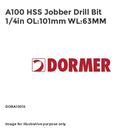 Low stock (10 units)£3.95Unit price /UnavailableA100 HSS Jobber Drill Bit 1/4in OL:101mm WL:63MM DORA10014