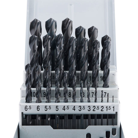£17.59Unit price /UnavailableHSS 1.00-10.00MM X 0.5MM Straight Shank Jobber Drill Sets - TiN Tipped - 19 Piece