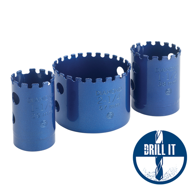 A top line range of multi purpose vacuum brazed diamond edge holesaws with slots in the core barrel to clear waste material. Very fast cutting with long life.Diamond edge holesaws from the Duro ULTRA range are the ideal multi purpose hole cutter for all trade professionals. The DU-DHS can be used on a huge range of materials and has long tool life thanks to its unique welded tip design.Use of the latest brazing technology ensures that the bond between body and diamond is very strong and able to resist the excessive heat generated when drilling hard materials.USE ME FORWET Porcelain & Quarry tiles / Class 5 granite / Travertine / Marble / Reinforced glass & cement stone. DRY Glass / Polymers / Fibreglass / Decking / Plywood / MDF / Plastics / Laminates / Perspex / Brick / Paving / Cast iron / Virton / Aluminium