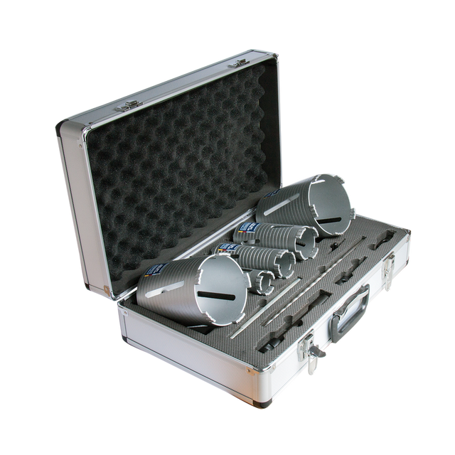 Dry Diamond Core Drill Kit DUSDC | DURO ULTRAAvailable as a 5 piece kit in ULTRA SHARK specification for professional users seeking optimum performance.Kit includes DURO PLUS chuck adaptor, sds adaptor, universal extension, guide rod, drift key & 350mm long pilot drill.USE ME FORHard York stone / London brick / General house brick / Flint aggregate common / Handmade bricks / Facing bricks / Lightweight concrete block / Breeze block / Class A & B Engineering bricks / Concrete / Lightly reinforced concreteTHE ULTIMATE SMOOTH CUTTING, SNAG FREE DIAMOND CORE DRILLCONICAL BODY & NARROW SEGMENTS FOR NO TRAPPING & CORE STRESS10mm turbo shark segment heightKantore segment configurationNarrow anti snag barrelSpiral barrel with slotsLaser welded & zero segment loss