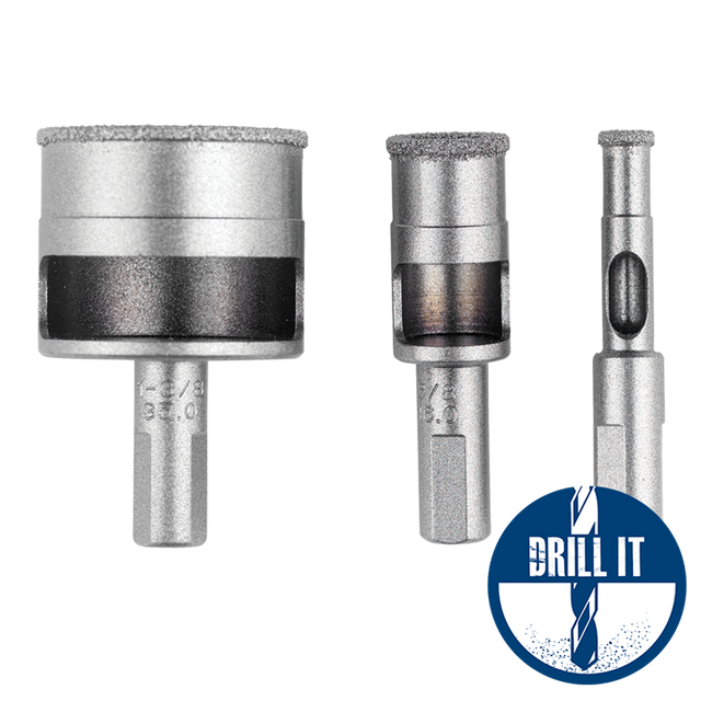 Diamond Tile Drills DU-CTD-VAPODRY Duro ULTRA with a brazed bond matrix giving the ability to drill the hardest porcelain tiles practically DRY! Drill quickly and easily with minimal coolant and incredible life, auto slug ejection and 3 flatted shank.Drill dry in the hardest of tiles! Minimal coolant allows dry drilling giving exceptional lifeDUROs VAPODRY diamond drill, drills holes in the hardest stone and tile materials up to and including grade 5+PATENTED THIN KERF DESIGN & OPTIMUM SIZE SUPERIOR GRADE DIAMOND GRIT enables incredible penetration rates over 70% fasterQuickly and easily drill multiple holes with minimal coolant effectively DRY drilling with excellent speed and tool lifeA single dip in any fluid before starting any hole is enough to allow the VAPODRY to drill without the use of a constant flow of coolantAuto slug ejection enables continuous multi-hole drilling with the highgrade diamond meaning easy start capability in the tightest of areas without a guideLow torque running speeds prolongs the battery life of cordless unitsA tough alloy body ensures zero distortion when applying pressure to the drillNo risk of discolouring tiles and grout lines thanks to the dry drilling capabilityThe drills can be used wet as well and will achieve extended lifeIdeal for professional tilers, plumbers, electricians and DIY usersUSE ME FORULTRA high performance diamond tile drill with the ability to drill wet or practically dry in the hardest of tiles: Porcelain (grade 5) / Ceramic / Quarry tiles / Marble Terracotta / Glazed tiles / Terrazzo/ Agglomerates / Cement / Glass / Granite