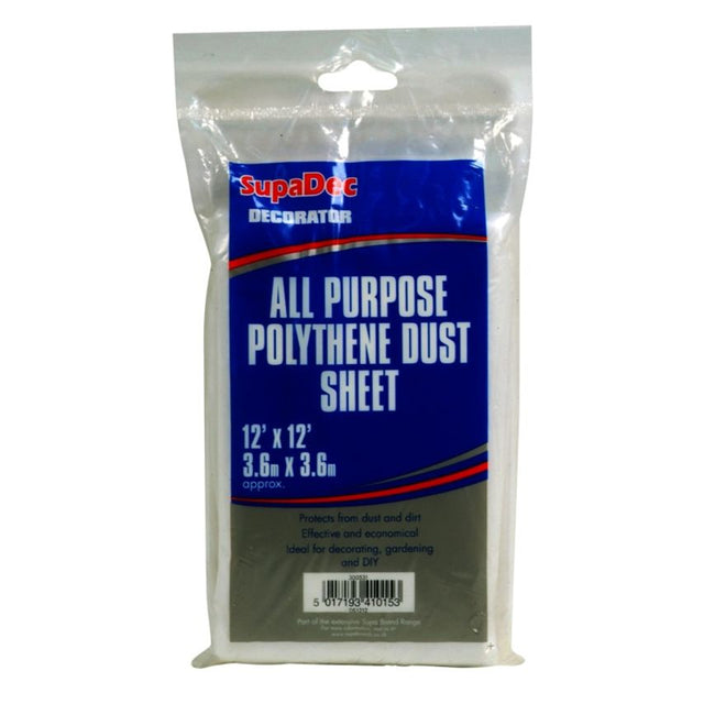 SupaDec All Purpose Polythene Dust Sheets 12' x 12' Protects from dust & dirt Effective & economical Ideal for decorating, gardening & DIY Disposable polythene dust sheets