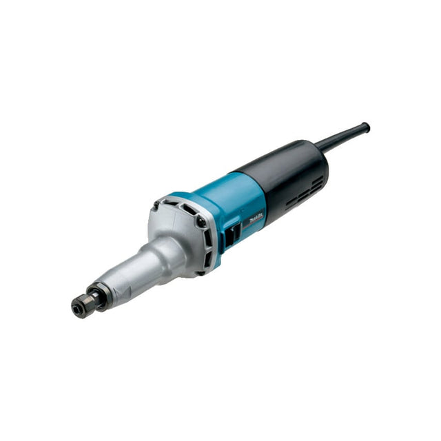 GD0810C Heavy-duty variable speed die grinder with high power motor. Suitable for grinding and facing work. Improved tool life due to the Super Joint System - SJS. SJS absorbs the shocks created by accidental wheel-lock during operation to protect gear, collet and coupling for longer tool life. For mounted points up to 50mm diameter. Power input: 750W. No load speed: 1,800 - 7,000rpm. Collet size: 6mm or 1/4. Weight: 1.70kg. Length: 370mm.