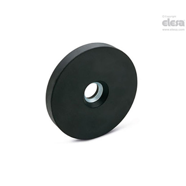 RMJ Flat retaining magnets, Smooth pass-through hole for countersunk-head screws, No-slip coating in black colour For product drawing and dimensions refer to pdf Item data sheet.