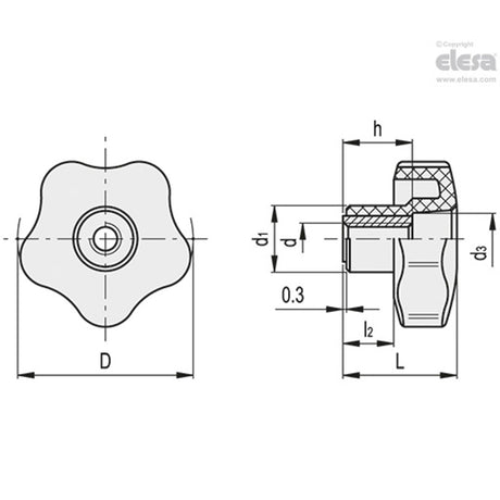 VCT Lobe knobs Technopolymer Zinc-plated steel threaded stud with cap VCT.50 p-M8x50-C3