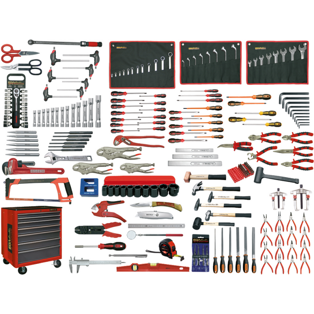 227 Piece Mechanics Set with Roller Cabinet and EVA Trays by EGA Master