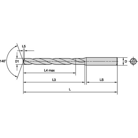 B053A05000CPG Solid Carbide Drill 5MM/.1969/8XD Coolan