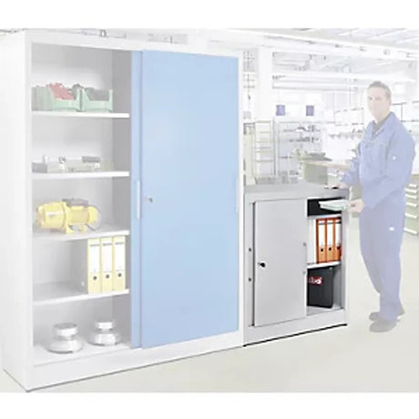 Low stock (10 units)£439.99Unit price /UnavailableSliding Door Cupboard, Height 1000mm, With 2 Shelves, Depth 420mm, Doors In Light Blue RAL 5012