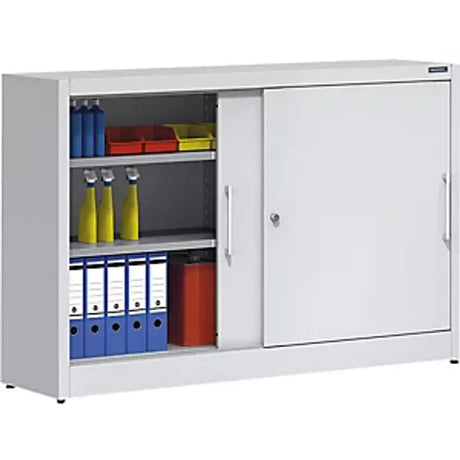 Low stock (10 units)£989.99Unit price /UnavailableSliding Door Cupboard, Height 1000mm, With 2 Shelves, Depth 500mm, Doors In Light Grey RAL 7035