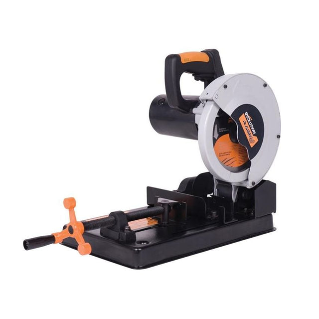 The Evolution HTC RAGE-4 185mm Mini Chop Saw is designed exclusively for Electricians and Plumbers, this incredible multipurpose saw can save you time and energy every single day. It produces a fast, ultra clean cut through armoured cable, Unistrut and cable tray, as well as conduit, chrome, copper & plastic pipe, plastic hose. No more need to tirelessly toil away with a hacksaw, the RAGE4 leaves an instantly workable finish in a fraction of the time. The cut through Steel produces no burr, no heat and virtually no sparks; plus with the same blade the RAGE4 will cut wood and even wood with nails. Specification Input Power: 1,250W.No Load Speed: 4,500/min.Blade: 185 x 20mm Bore.Max. Box Section: 3mm Wall @90: 45 x 45mm, @45: 45 x 45mm, Max. Rectangle: 3mm Wall @45: 46 x 97mm, Max. Round: 3mm Wall @90: 45mm.Recommended Duty Cycle: 30 mins.Sound Pressure Level LPA: 93 dB(A).Weight: 8.7kg.