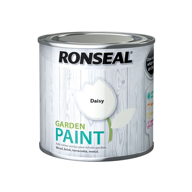 Ronseal Garden Paint has been designed to add colour to the whole garden, and not just on wood. It can also be used on other garden substrates such as metal (primer may be needed), terracotta, brick and stone. It adds colour, waterproofs and improves water repellency. Its high solid content leads to a high film build and longer lasting protection. It is rainproof in an hour and will resist cracking and peeling. Available in many colours. 1 x Ronseal Garden Paint Daisy 250ml