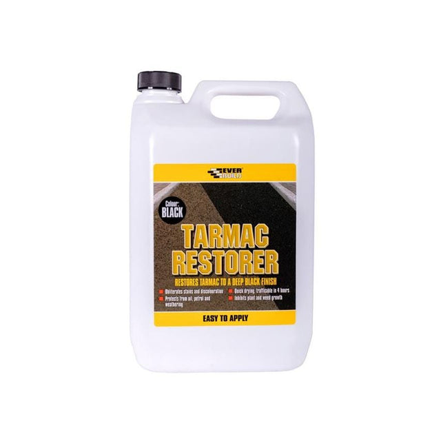 Everbuild Tarmac Restorer is a high-performance surface coating specially formulated to make tired old tarmac look just like new. It provides a tough, durable low sheen finish that protects from weathering, oil and petrol spills and unsightly plant and weed growth.