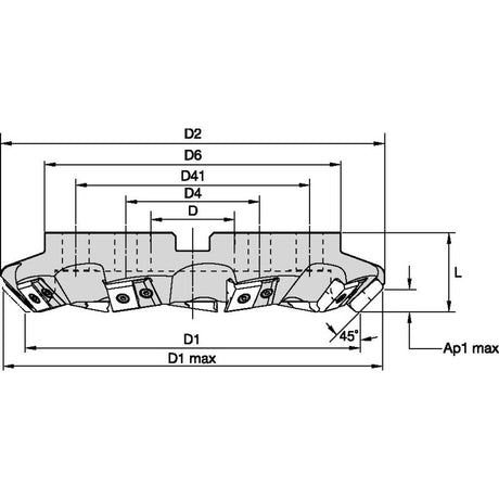 MEGA45D1000LN863C10LH MEGA 45 Shell Mill D=10" Z=9 L