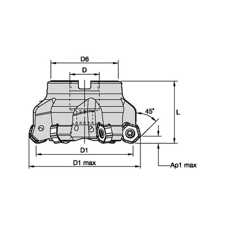 Low stock (10 units)£59.39Unit price /UnavailableKSHR200HN4345F3 Dodeka Mini 45 Shell Mill D=2"