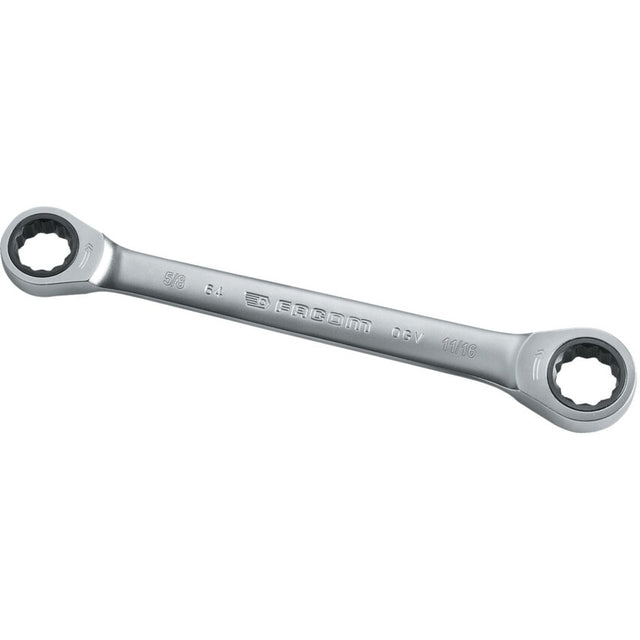 Compact ratchet mechanism and reversible by flipping the wrench.