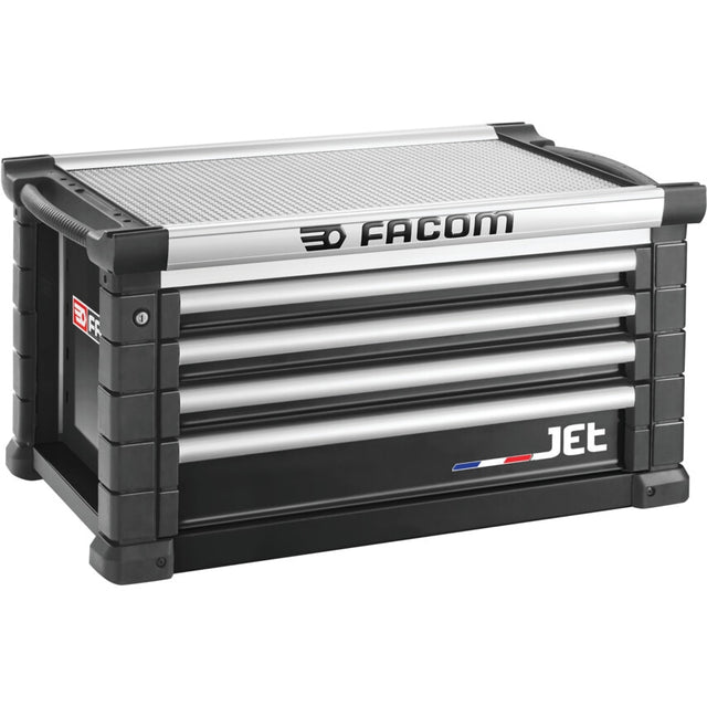 Tool chests complete with 4 drawers providing ample tool storage. Features and Benefits Stackable on a rolling chest of the same dimension for customisation and convenient storage Supplied with linking kit for secure fitting of the unit Drawers open to 100% for complete access (3x 60mm high drawers and 1x 130mm high drawer: total capacity of 105kg) Epoxy powder coated for durability Soft bumpers with a damper effect fitted on the 4 angles and drawers to protect the aluminium hook Fixed front and back lips to help prevent tools and objects rolling or falling off when moving Worktop with built-in handle, Slots for 16 screwdrivers for secure and accessible tool storage Typical Applications Warehouses Workshops Automotive
