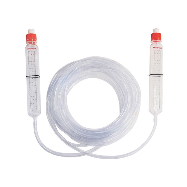 The Faithfull Water levels utilise the principle that water will always find its own level. They are very accurate instruments that are used widely throughout the construction and building industries. Easy to set up while speedy and simple to use, they are designed for single-handed use when simultaneously measuring equal heights at two distant points. A water level is the ideal tool for accurate unsighted room to room measurement or distant levelling, when using a spirit level would be ineffective. Other applications include working on wall tiling, guttering, landscaping, patios, driveways, fencing and drainage projects. This low-cost water level is accurate to 1mm at 10 metres. Virtually unbreakable graduated tubes and vent caps. Tube Length 10m (33ft)