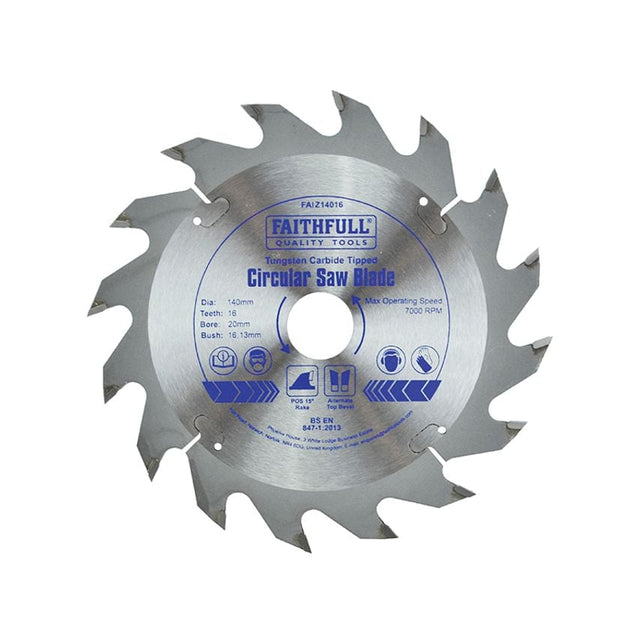 Faithfull Professional TCT Circular Saw Blade with 7mm Tungsten Carbide Tipped teeth to ensure a long working life and accuracy of cut. Each blade has laser cut expansion slots to improve their performance by reducing heat build up. Available in a variety of sizes with different tooth counts that allow the user to select the correct blade for the job in hand. All the blades in this range fit most popular makes of power machines.
