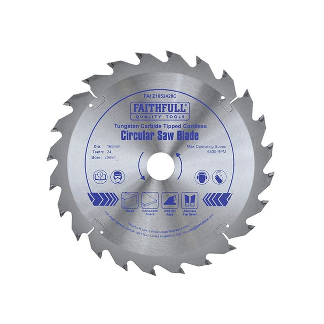 The Faithfull TCT Cordless Trimsaw Blade has Tungsten Carbide Tips and a narrow 1.6mm kerf for improved battery performance, and laser cut expansion slots to reduce heat build-up. The blade is specially designed for use with hand-held cordless saws, and this range includes blades for fast cutting, and fine finishing on all types of timber and man-made boards.