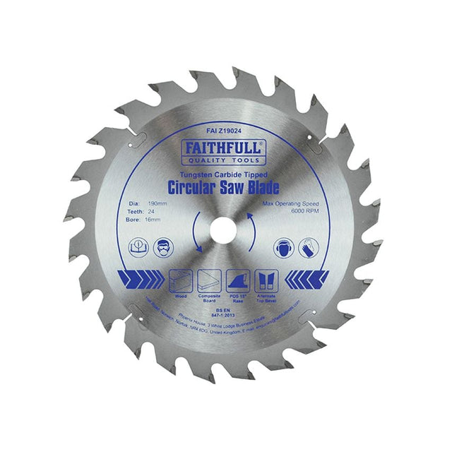 Faithfull Professional TCT Circular Saw Blade with 7mm Tungsten Carbide Tipped teeth to ensure a long working life and accuracy of cut. Each blade has laser cut expansion slots to improve their performance by reducing heat build up. Available in a variety of sizes with different tooth counts that allow the user to select the correct blade for the job in hand. All the blades in this range fit most popular makes of power machines.