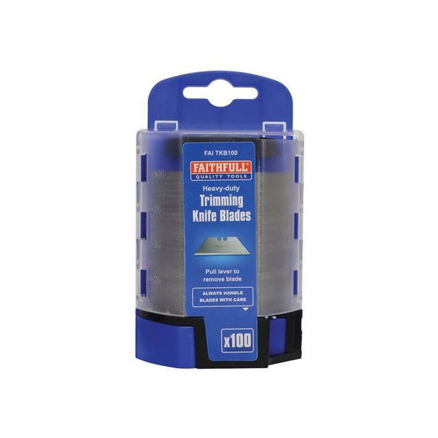 The Faithfull general-purpose heavy-duty blades are made from quality steel and suitable for trade use. The blades are designed to cut carpet, vinyl, cardboard, canvas, leather and some softer plastics.The heavy-duty trimming knife blades are made to fit most leading brand knives. Blade Size: 19 x 60mm. Thickness: 0.6mm.