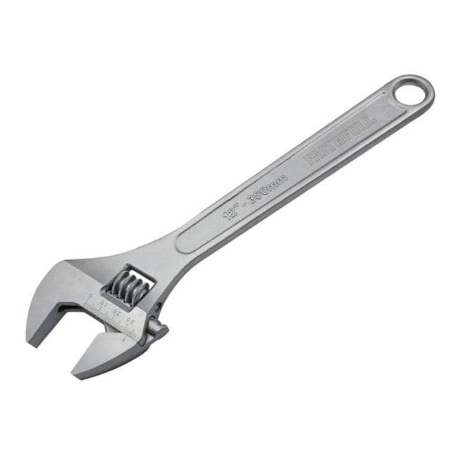 The Faithfull Chrome Adjustable Spanner has a knurled adjustment screw which enables the jaws to fit various sizes of bolt and nut head. This chrome vanadium steel wrench is forged, hardened and tempered with a matt chrome-plated finish. Particularly useful when only a limited number of tools can be carried or kept in a tool kit. An ideal general maintenance tool.