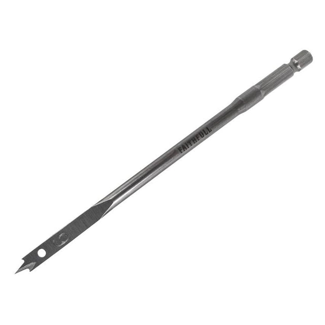 Faithfull Flat Bits produce a clean cut at a fast and efficient rate. They will bore all types of timber and will perform just as well with, or against the grain. These bits are also suitable for cutting MDF, plastics and plasterboard. The whole bit is forged from one piece of carbon steel and is heat-treated for extra strength and durability. All sizes feature a non-slip 1/4in hexagonal shank with a locking mechanism compatible with adaptors or chucks with a built-in quick-release feature. All sizes, except for the 6mm and 8mm flat bits, have a grooved tip and extended spurs to produce a clean cutting area, and faster boring speed.