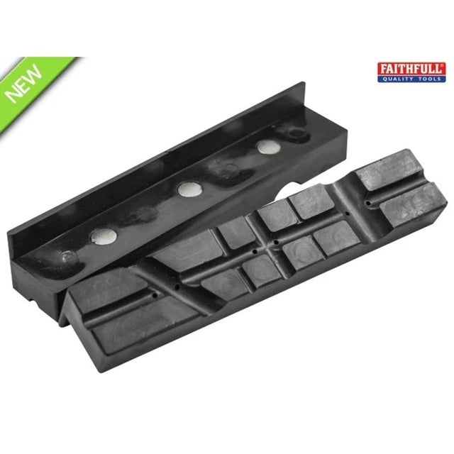The Faithfull Magnetic Plastic Vice Jaws are designed to fit Faithfull and most other mechanics bench vices. They provide excellent grip without damaging soft or polished surfaces. Grooves allow round stock and tubes to be held at 45, 90 and 180 degrees. The inset magnets adhere to the vice's metal jaws making them simple to add or remove. Supplied in pairs.