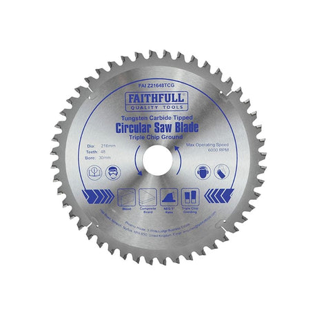 TCT Circular Saw Blade Triple Chip Ground 216 x 30mm x 48T NEG FAIZ21648TCG