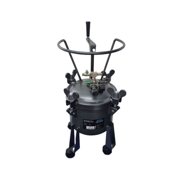 10ltr Air fed pressure tank for paint spraying with manual agitator on wheels. Use this pressure feed tank for spraying all types of paint with a HVLP spray gun. Simply fill the tank up with paint, connect an air supply to the tank and a pressure feed spray gun and you are ready to spray.