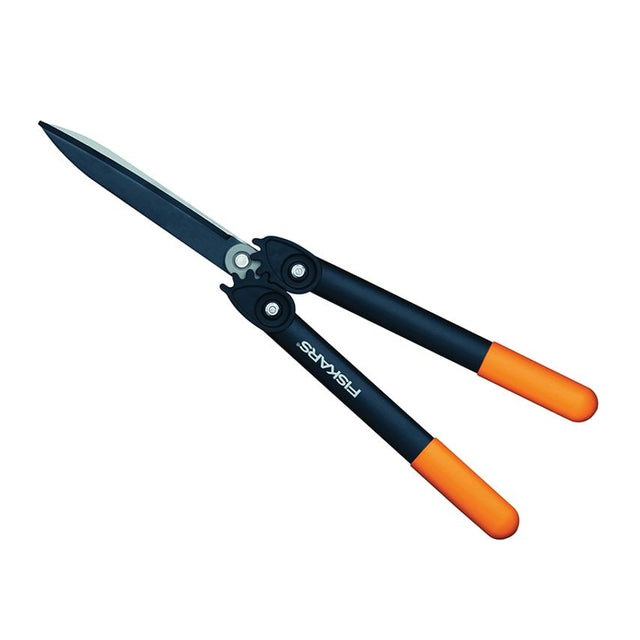 Fiskars HS72 PowerGear Hedge Shears are suitable for many different cutting needs in the garden hedge trimming, trimming around bushes and edges etc. The unique gear mechanism and the lever system gives three times the cutting power, making light work of the toughest challenges. The lightweight and sleek design makes cutting easy. The handles are made of tough fibreglass reinforced polyamide and the grips are made of fibreglass reinforced plastic. The tough stainless steel blades have a PTFE coating on the upper blade for less friction. Specification Length 612mm Weight 0.72kg
