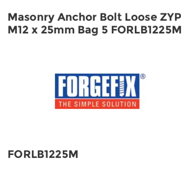 Masonry Anchor Bolt Loose ZYP M12 x 25mm Bag 5 FORLB1225M
