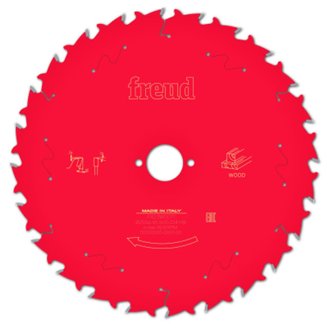 Made for table saws, ideal for cutting hard wood, soft wood, plywood, chipboard and MDF. Freud made Titanium Cobalt Carbide (TiCo) teeth enable flawless finish with a dramatically longer cutting life. The Perma shield coating technology provides superior protection and guarantees durable cutting performance. Best for ripping and good for crosscutting. Precisely the best - Freud as the biggest manufacturer of premium circular saw blades worldwide provides a blade for every application need. Specially designed anti-vibration slots enable smoth running and minimised noise. Freud special tri-metal shock resistant brazing alloy consists of copper wrapped between silver layers to withstand extreme impact. Highest blade stability and accuracy thanks to the special rolled-in tension ring and expansions slots. The premium steel body guarantees precision and high endurance.