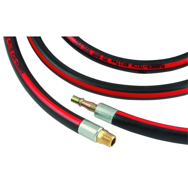 1/4" BSP Taper Male x 8mm Inside Diameter, Air Tool Hose Assembly, Rectus 19 Series Plug x 1/4" BSP Taper, Rubber Hose Assembly, Length 10 Metres, Working Temperature -20C to +60C, Maximum Working Pressure 20 bar, FT Pro Parker Rectus Tema