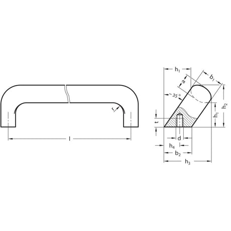GN565-26-160-BL Aluminium Cabinet U Handle, Blank Finish