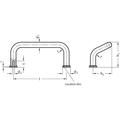 GN565.2-26-128-A-SW Cabinet "U' Handle; Aluminium; Black