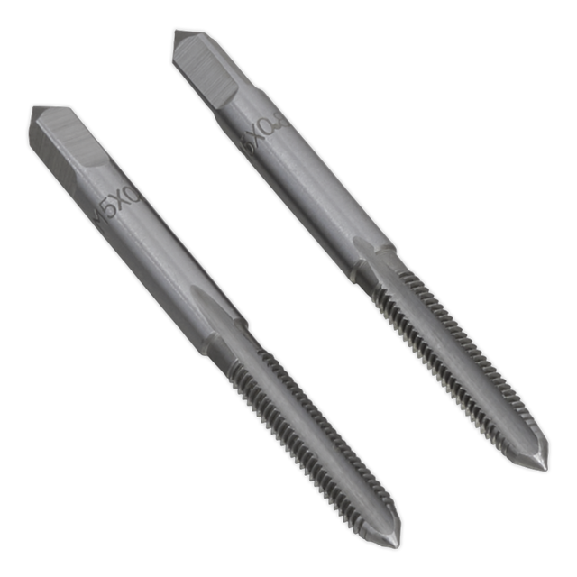 High quality 2pc steel tap set featuring plug and taper taps. Precision engineered with accurately cut threads. Supplied with plastic storage case.