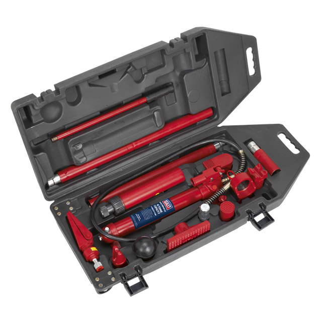 Heavy gauge snap-together pipework and cast snap-together attachments compatible with most leading makes of snap-together equipment. Supplied with 10tonne hand operated pump, hose, hydraulic ram and storage case.