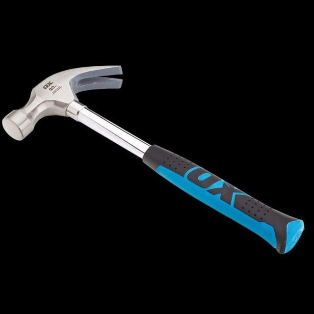 The OX Trade Claw Hammer features a heat-treated carbon steel head. Its polished head comes with laser marked weight while the handle comes with a textured grip.