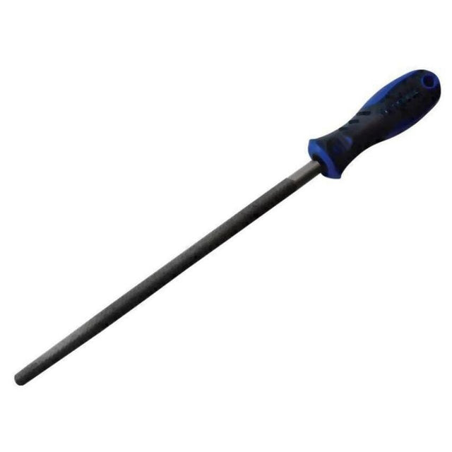 This Faithful Round Second Cut Engineers File is ideal for filing circular openings or concave surfaces and slightly tapered towards the point, with a double cut finish. For professional and frequent DIY use, fitted with a comfortable handle. Second Cut: approx. 36 teeth per 25mm (Medium).