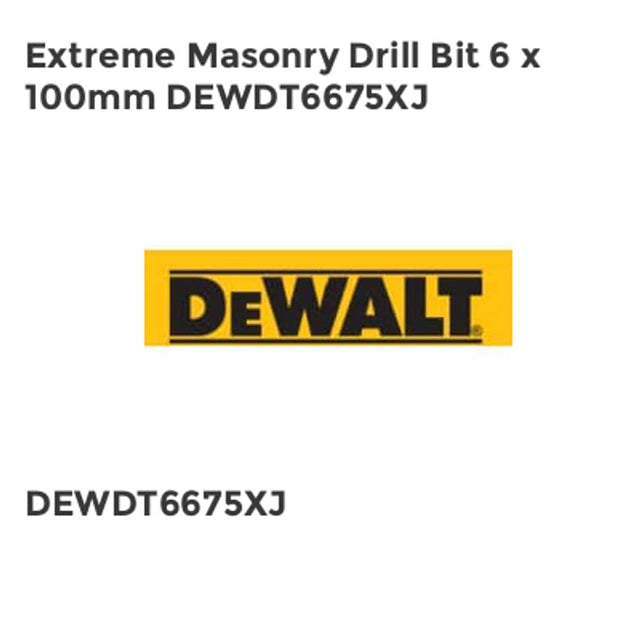 Extreme Masonry Drill Bit 6 x 100mm DEWDT6675XJ