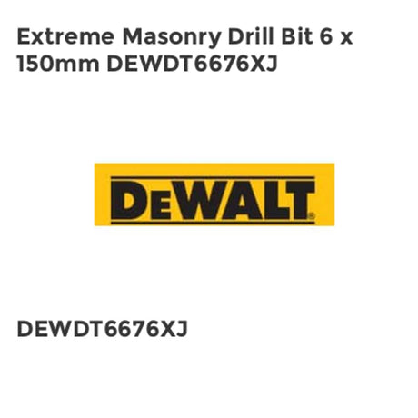 Low stock (10 units)£10.99Unit price /UnavailableExtreme Masonry Drill Bit 6.5 x 100mm DEWDT6678XJ
