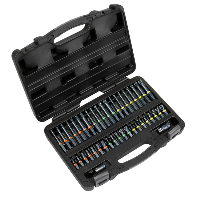 Supplied in storage case with inclined tray for quick and easy bit selection.