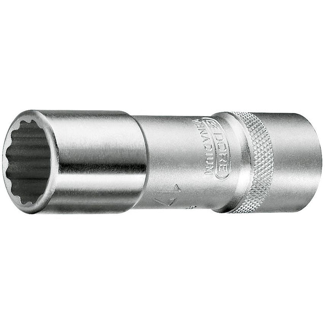 1/2" drive socket with ball retention groove. Acc.DIN 3124 & ISO 2725-1. Bi-hex UD profile grips on the flat of fixxings to prevent damage provide extra torque. Hole for 8mm tommy bar.