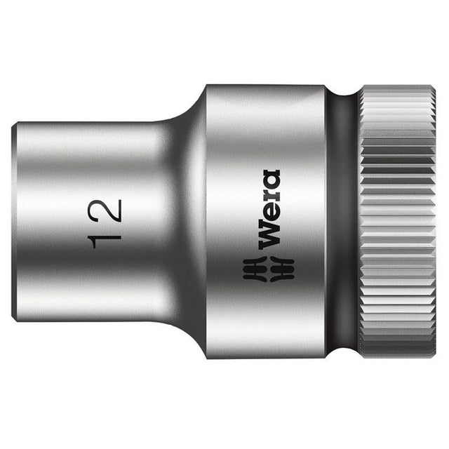 Wera Tools Zyklop HMC 1/2in Drive Metric Production Sockets for hex-head fasteners are suitable for manual and (non-impact) machine applications. Knurling at lower end to enable easy gripping when used in manual applications. Equipped with a ball stop groover. Utilises the Wera Tools 'Take it Easy' tool finder size stamping on the socket and a colour-coded band for rapid and easy identification of the required size. Made from chrome vanadium steel with a matt chrome-plated finish. Manufactured to ISO 2725 Part 3. 1 x Wera Tools Zyklop Socket 1/2in Drive 12mm